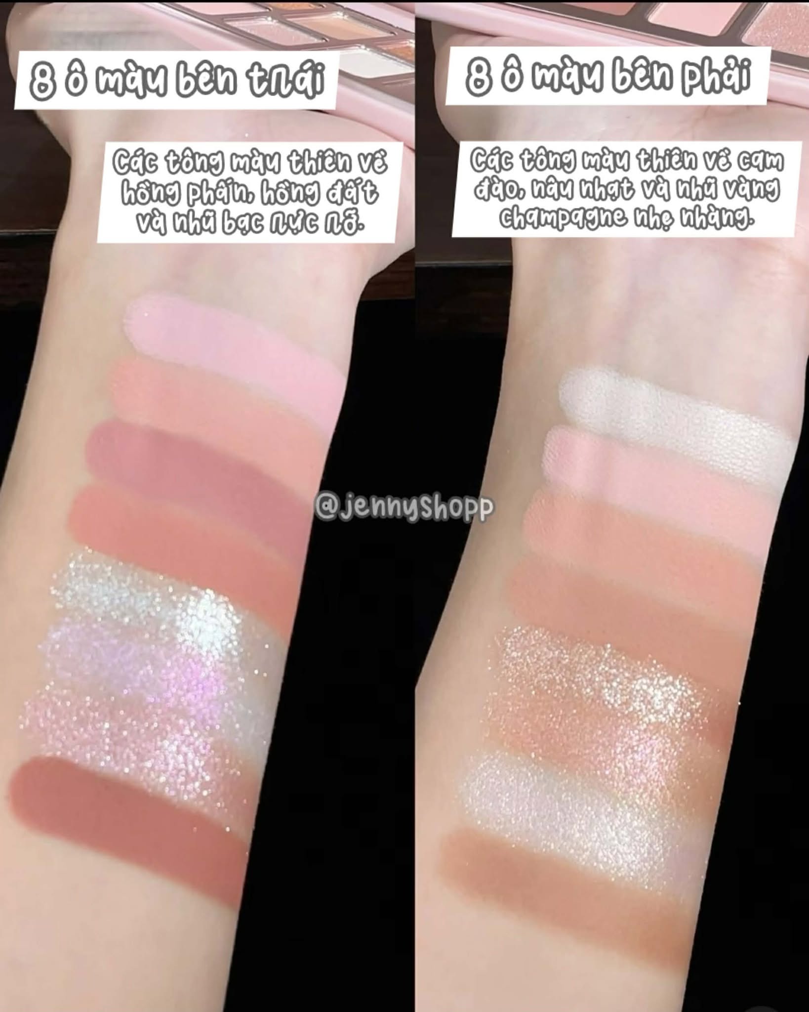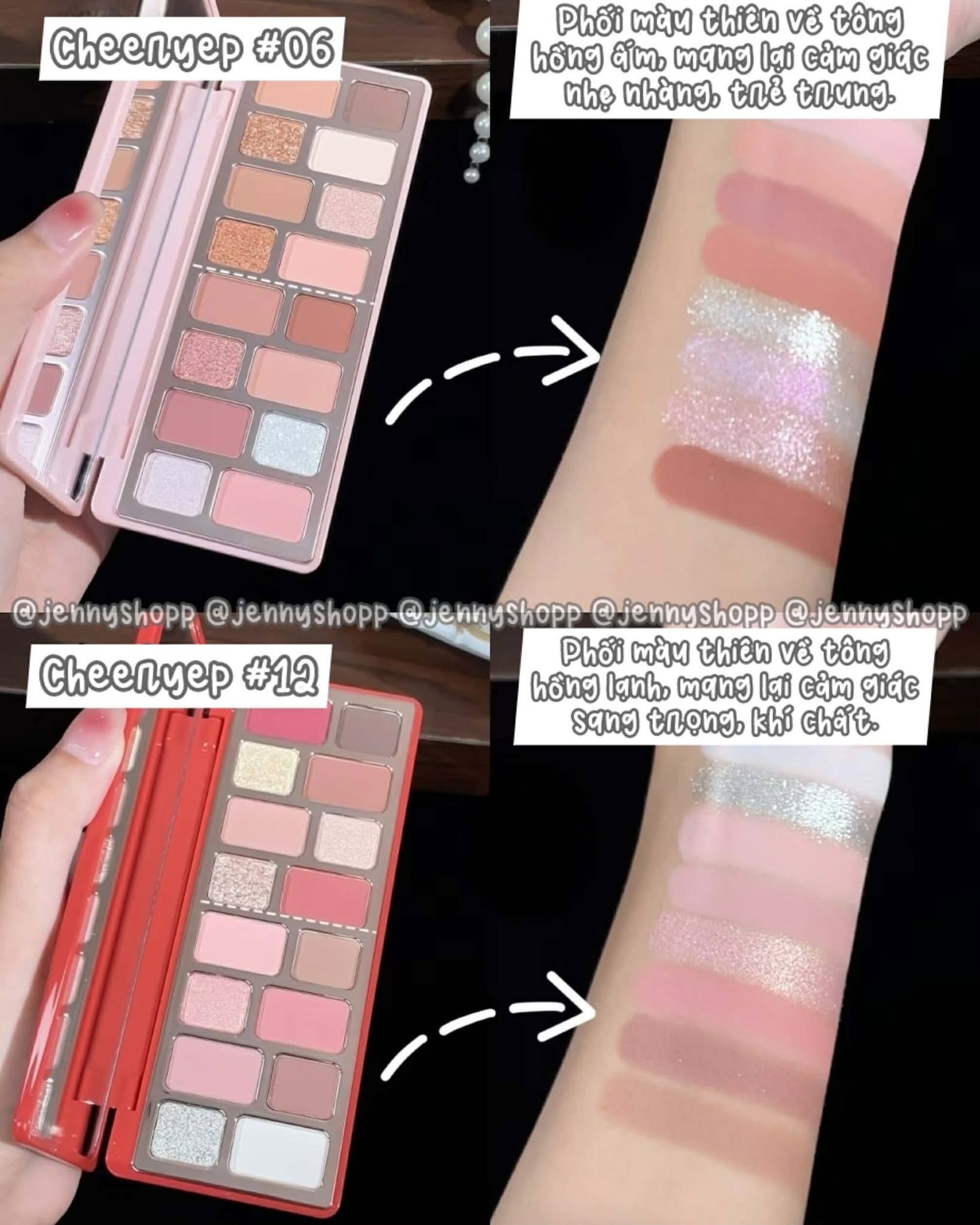 Jenny về sắn màu 06 vs 12, nhìn bề ngoài thì tưởng giống nhau, nhưng lên da mỗi bảng lại mang một “vibe” hoàn toàn riêng biệt: