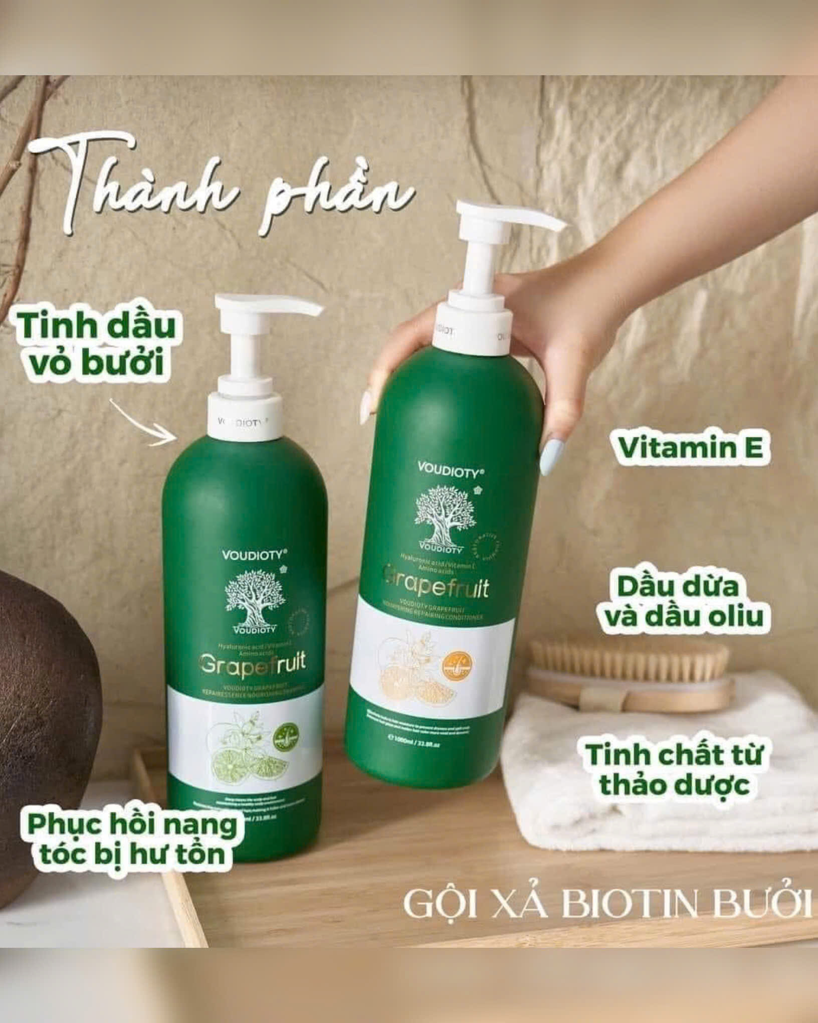 Bộ Dầu Gội Xả Bưởi Voudioty Grapefruit