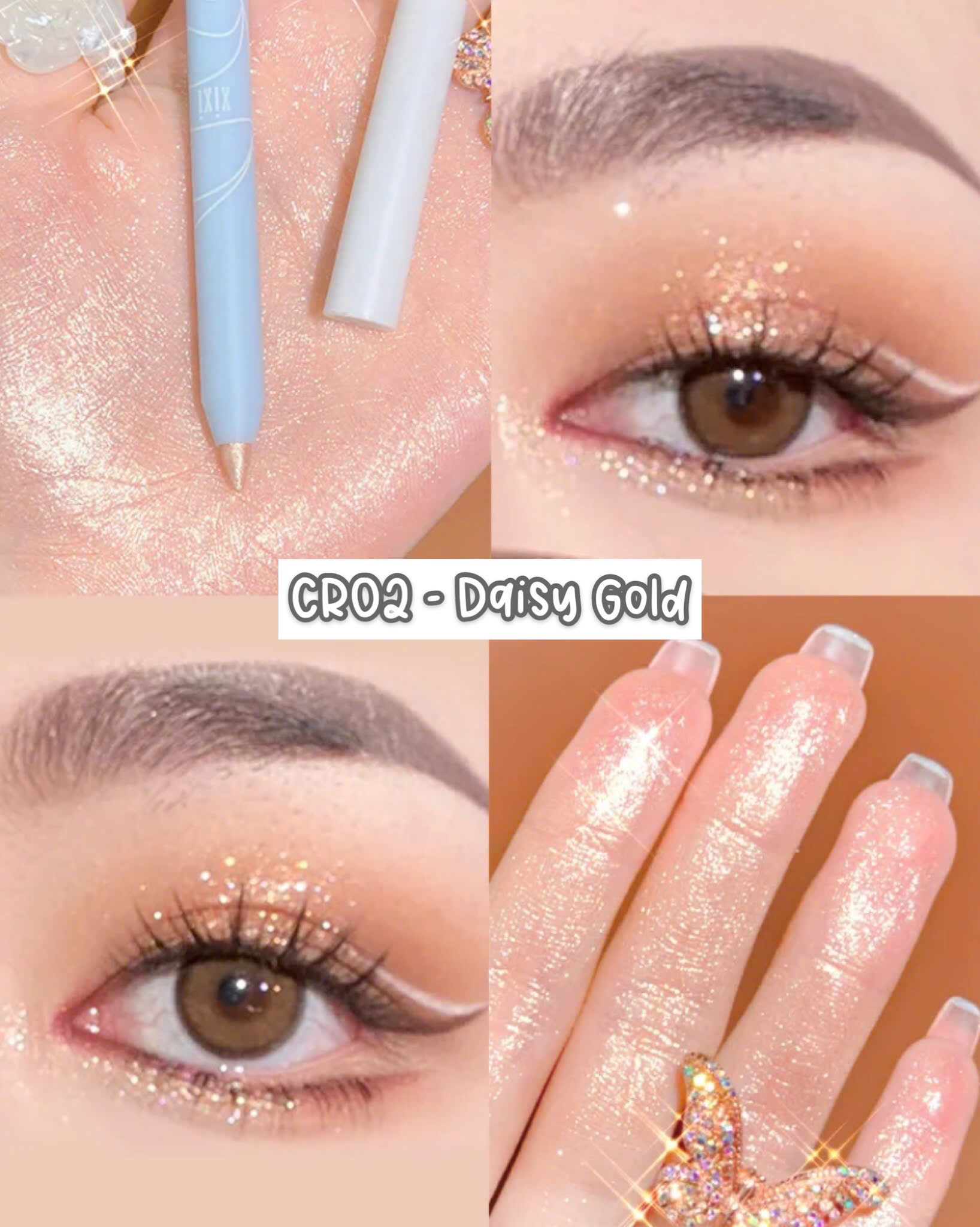 Bút nhũ được cấu tạo từ những hạt màu siêu nhỏ cho màu mắt siêu mịn, lấp lánh nhờ ánh nhũ bạc nhẹ, tạo ánh nhìn lôi cuốn mà vẫn cực kì tự nhiên.