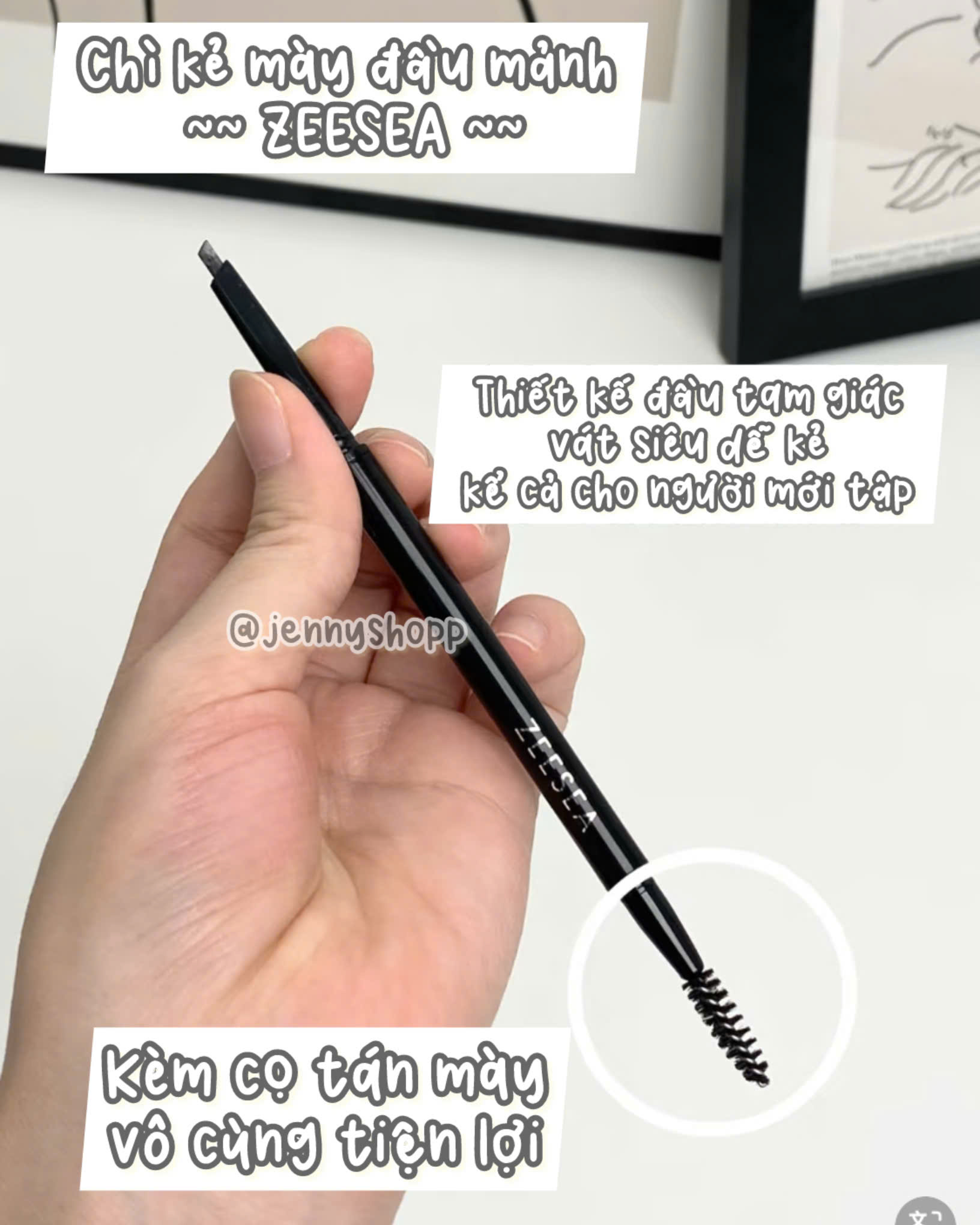 Là chì kẻ mày của thương hiệu Zeesea. Chì kẻ mày với thiết kế đầu dẹt, nhỏ, cho ra những đường nét mảnh, tự nhiên, giúp các chị em dễ kẻ cho cả những người mới tập kẻ mày. Sản phẩm có 2 đầu: một đầu kẻ và một đầu chải giúp cho đường kẻ đều màu và tự nhiên hơn gấp bội.