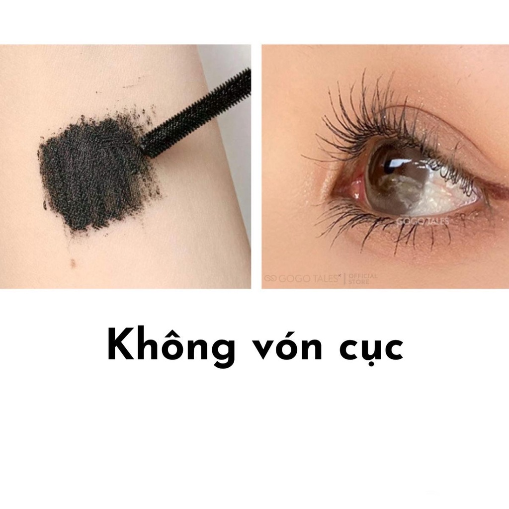 Chuốt mi nhà Gogo Tales với thiết kế đầu cọ đặc biệt, đầu chuốt mi mịn, thẳng giúp mi thêm dài, dày và tư nhiên, đầu cọ răng lược giúp làm tơi mi, mi cong vút và không bị vón cục; nhẹ, nhanh khô và không dính.