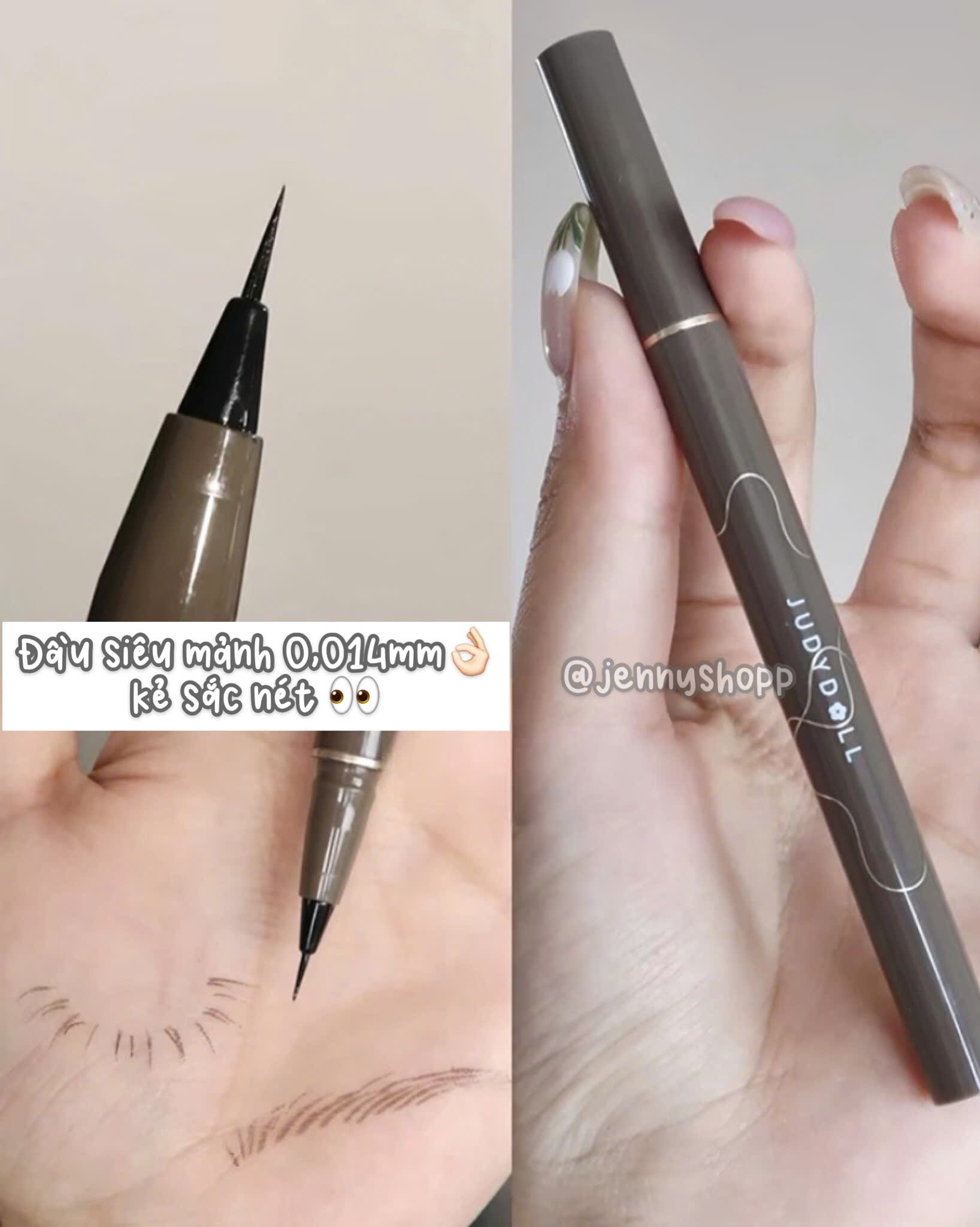 Đầu bút siêu mảnh chỉ 0.014mm dễ dàng điều chỉnh độ đậm nhạt, có thể dùng để vẽ mi dưới, gẩy sợi lông mày...
