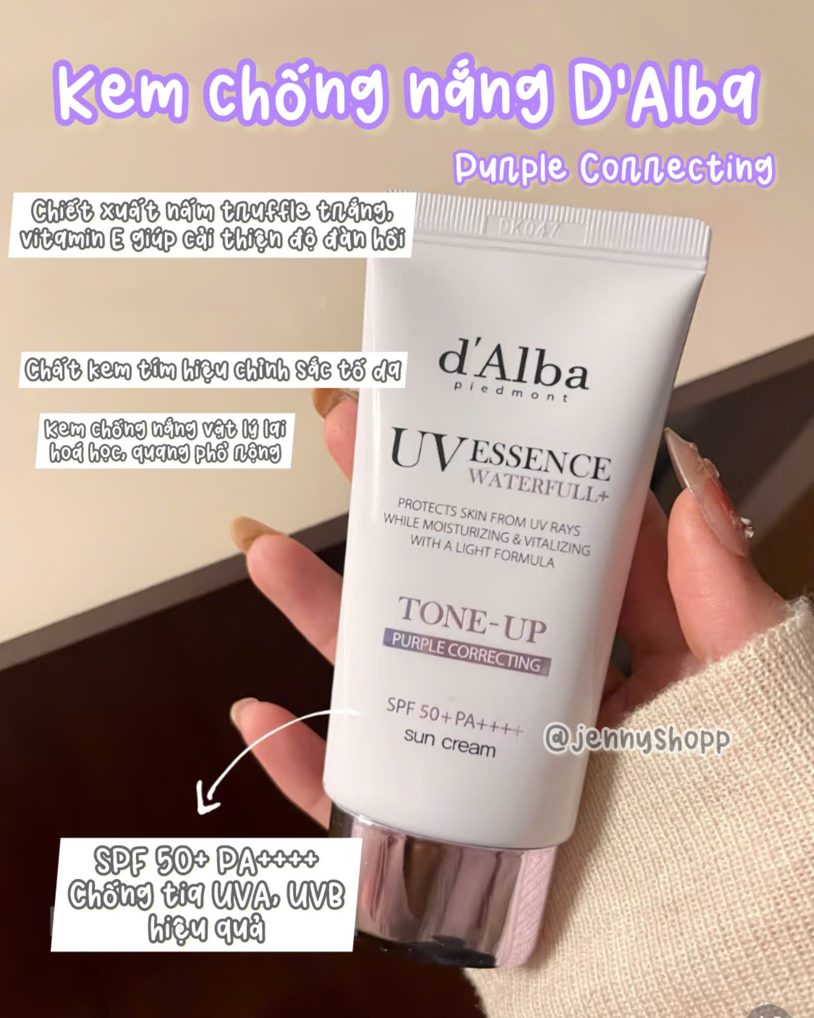 Kem Chống Nắng D'Alba UV Essence Waterfull Tone Up Purple Correcting