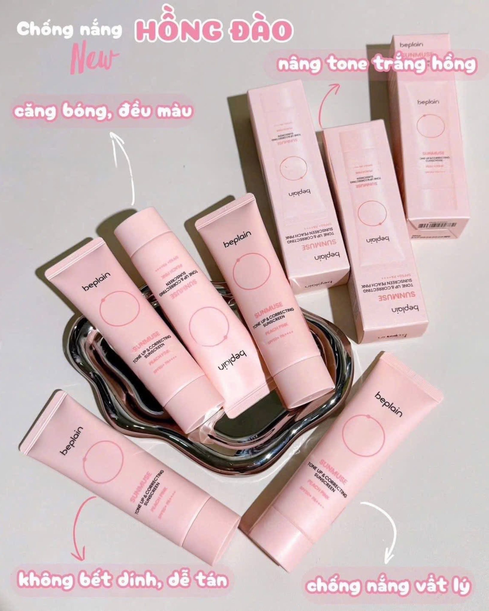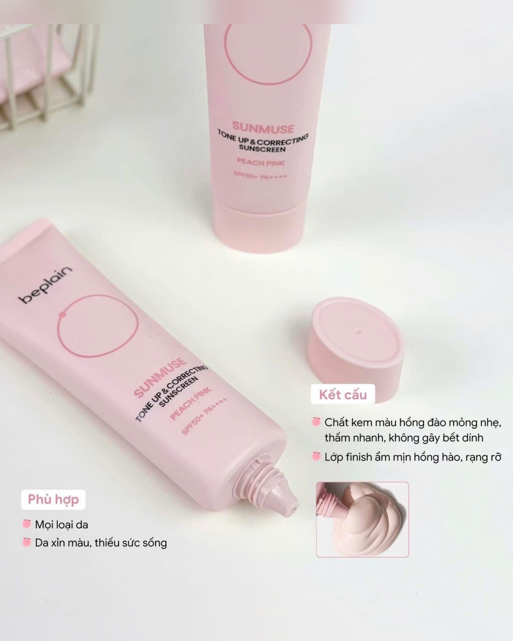 Kem Chống Nắng Nâng Tone Beplain Tone Up & Correcting Sunscreen Peach Pink SPF50+ PA++++