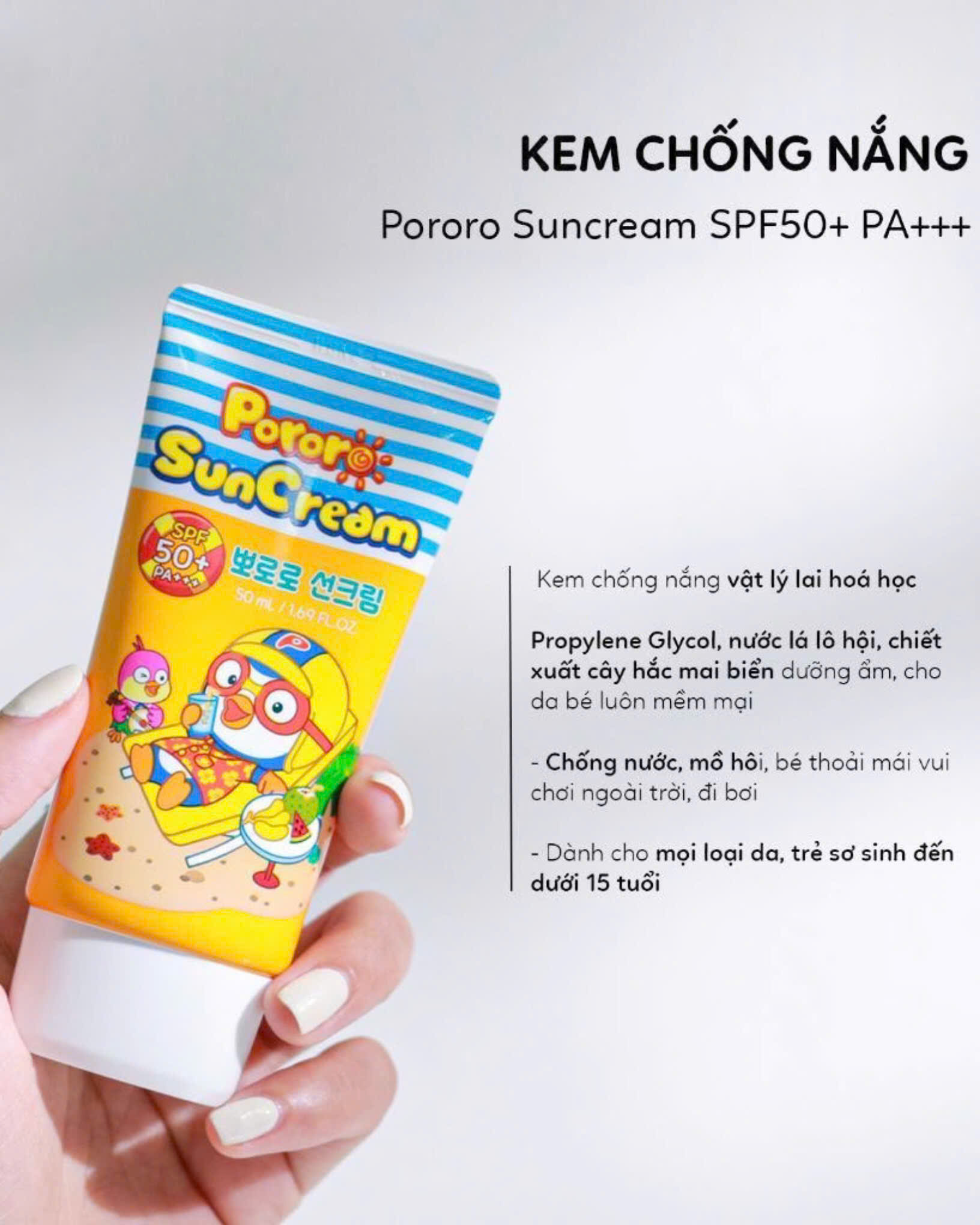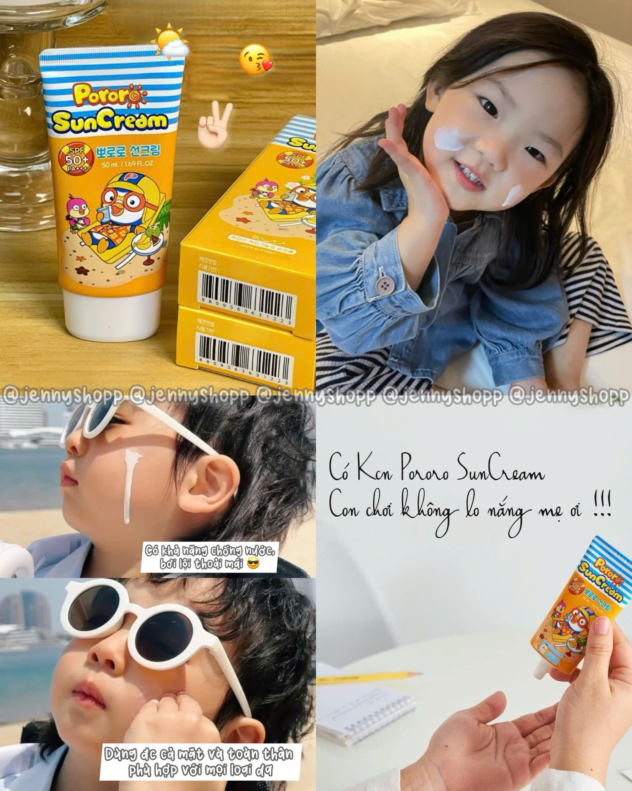 Kem chống nắng PORORO bên Hàn được nhiều cha mẹ tin dùng lắm. Bé cứ tha hồ chạy nhảy, hoạt động ngoài trời nha.