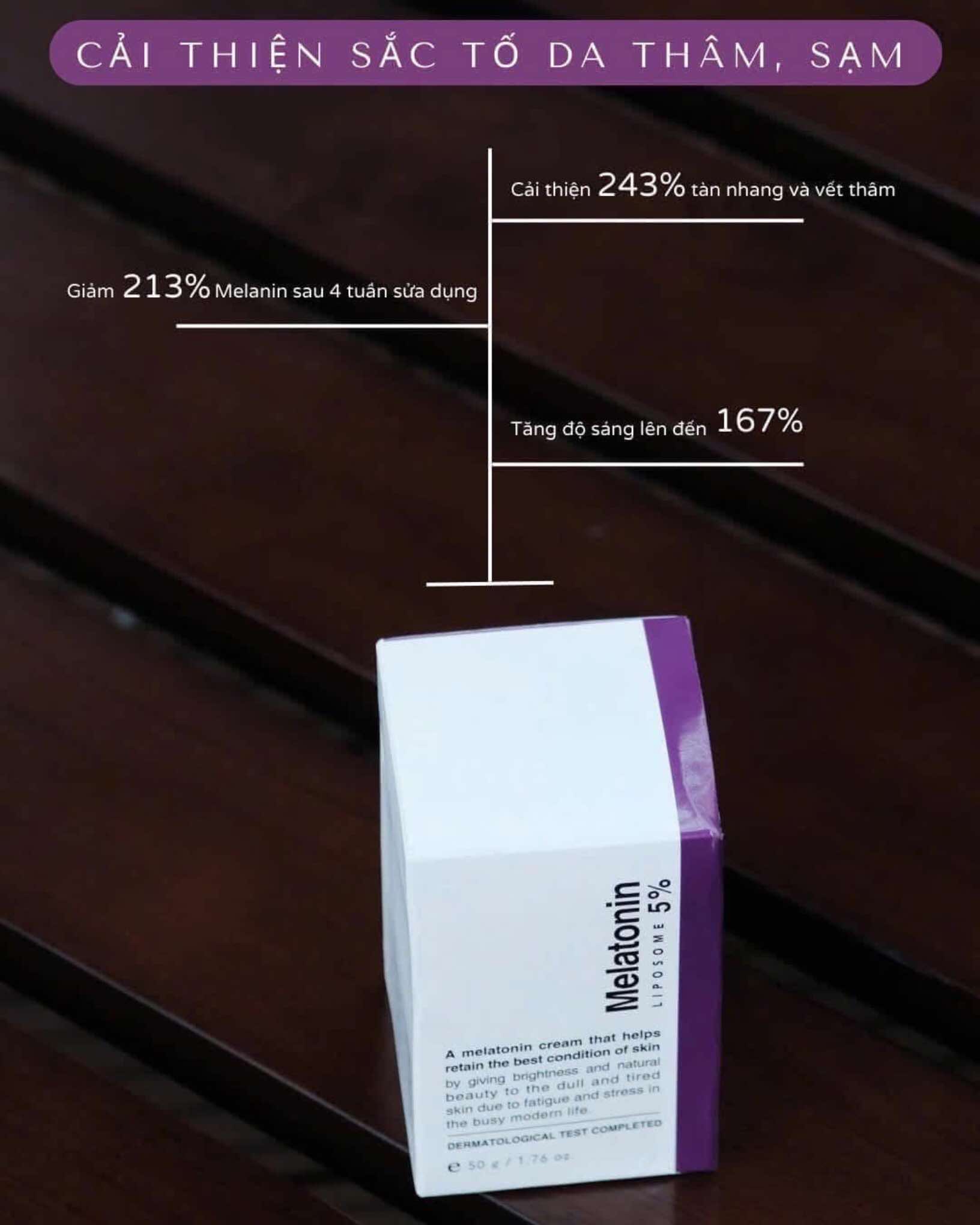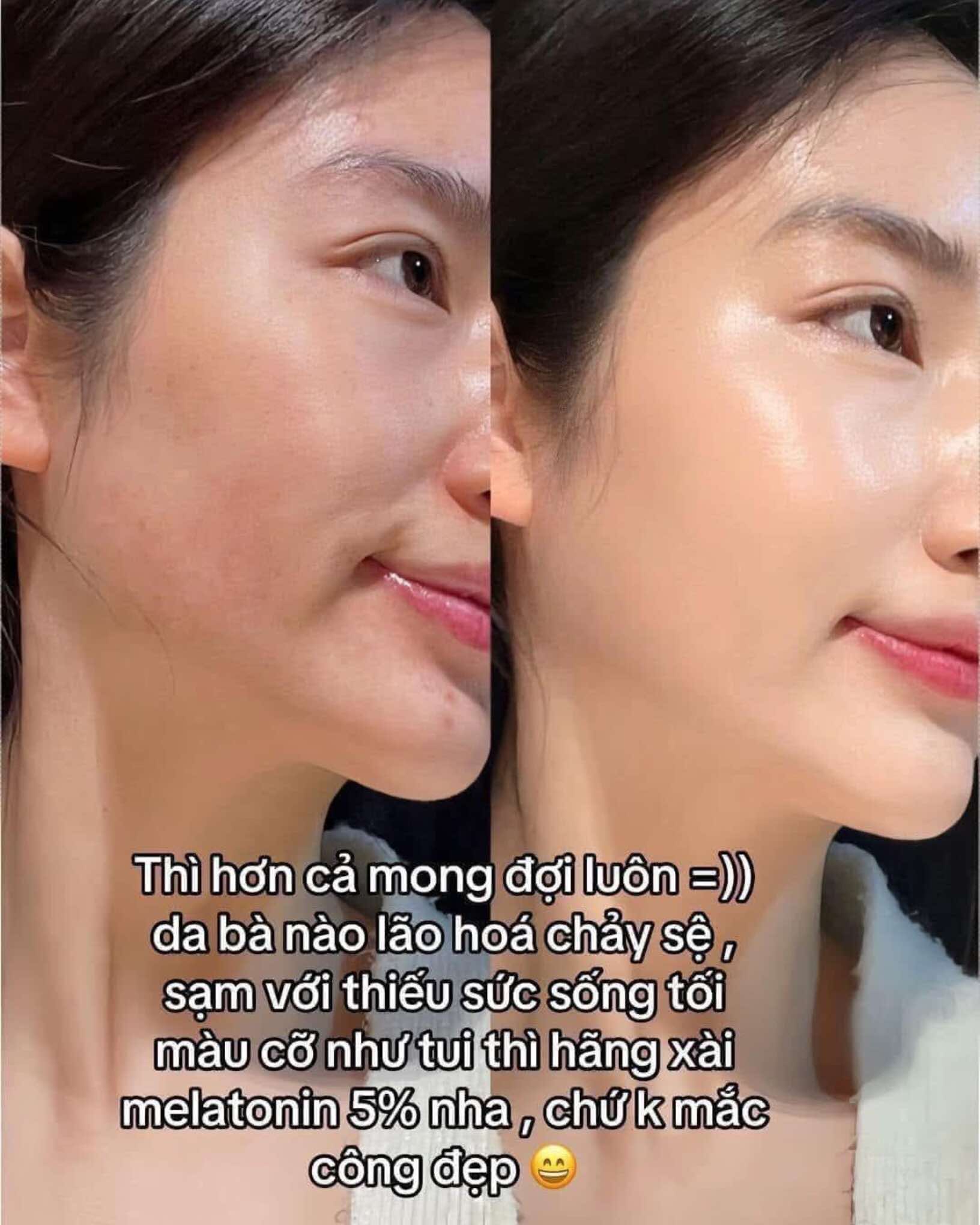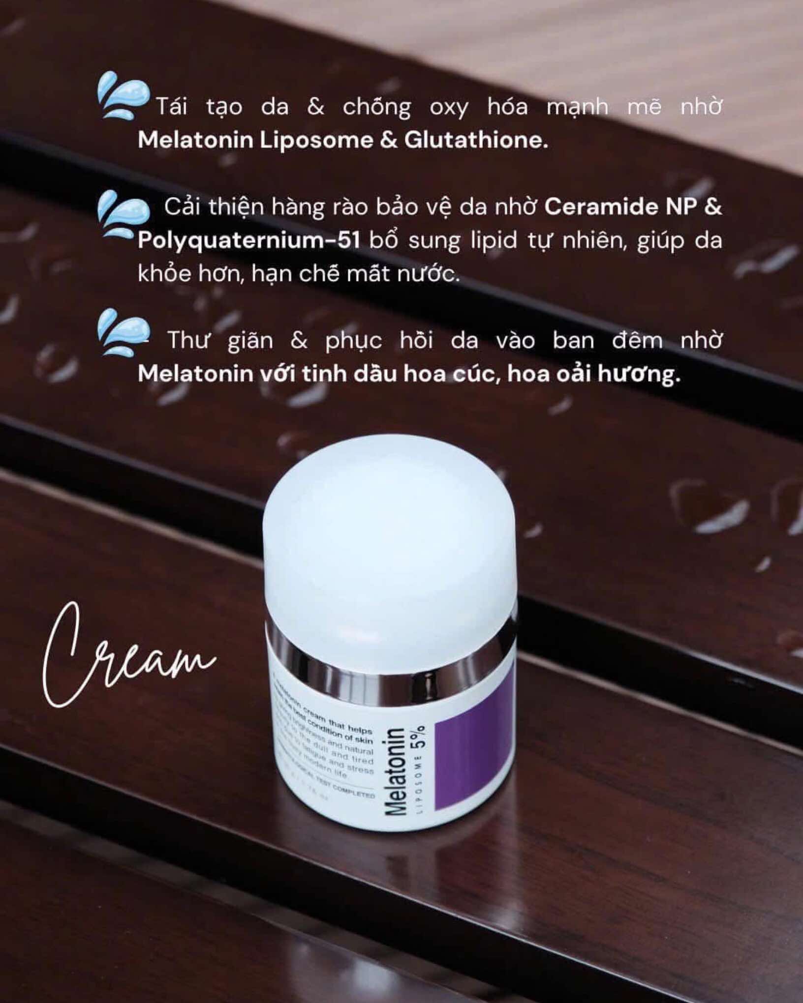 Có khả năng phục hồi & tái tạo làn da với Melatonin hiệu quả dưỡng trắng & mờ thâm nám vượt trội hơn cả so với Vitamin C. Melatonin giúp tái tạo tổn thương da từ tia UV bằng cách kích thích da để tạo ra chất chống oxy hóa. Melatonin thúc đẩy sản xuất collagen lành mạnh, cải thiện nếp nhăn và nếp nhăn.