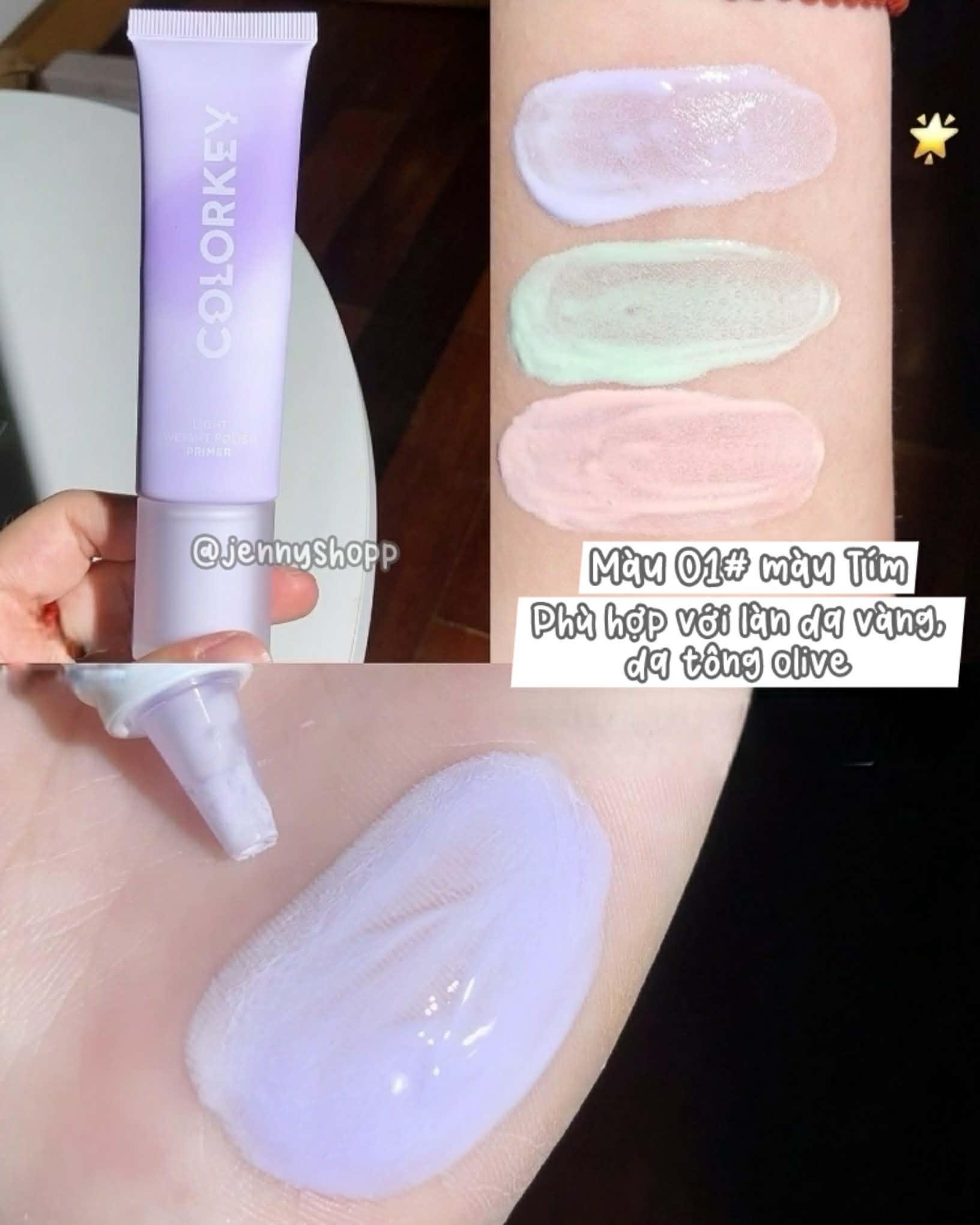 💜 Màu 01 - Tím Trong Suốt: “Cứu tinh” cho da vàng, da xỉn màu. Trung hòa sắc tố vàng, giúp da sáng bừng, trong trẻo tức thì.