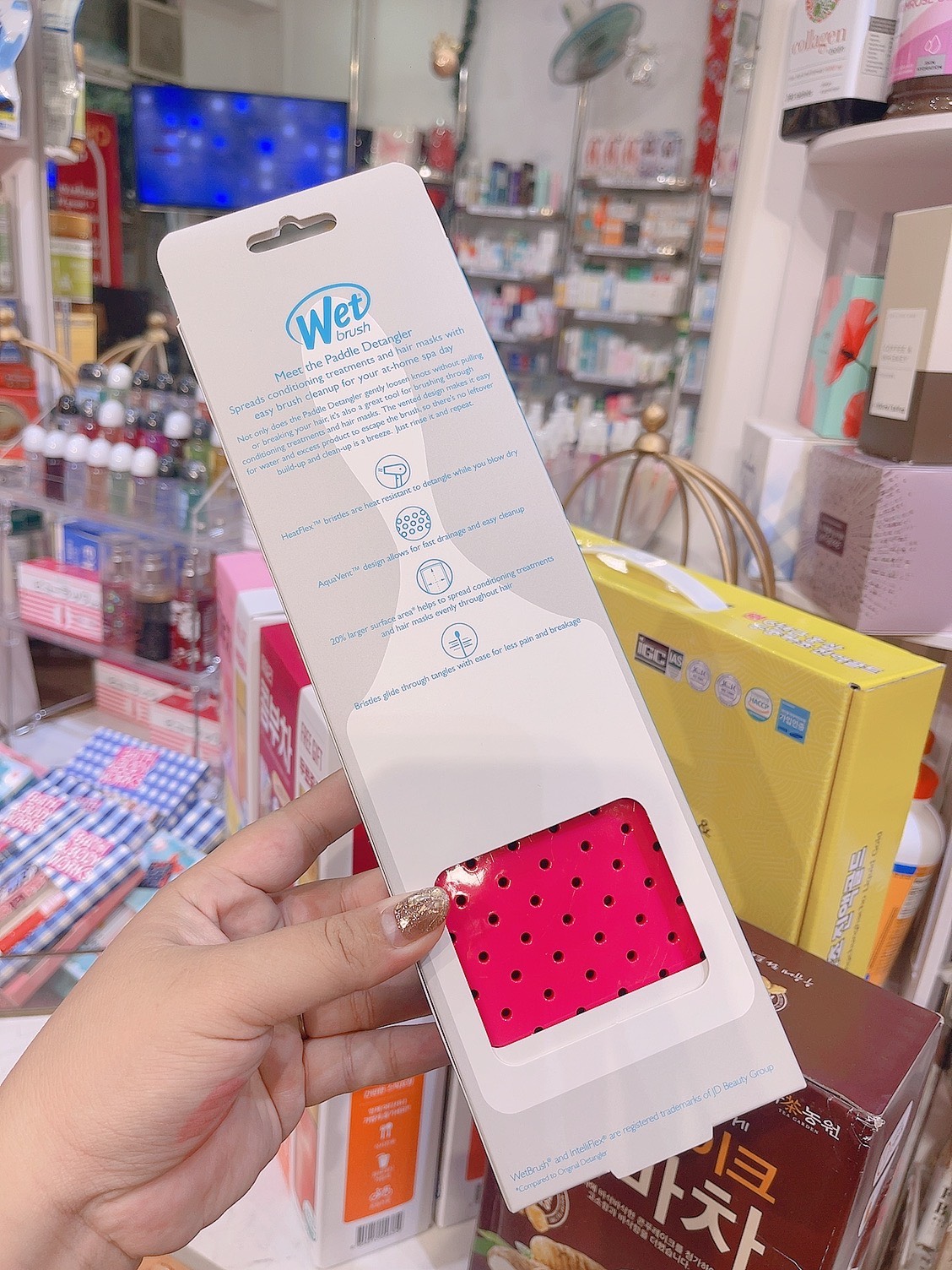 - Đầu sợi răng lược được bọc 1 lớp nhựa tròn có tên gọi là Polysoft, có tác dụng mát xa da đầu, kích thích mọc tóc.