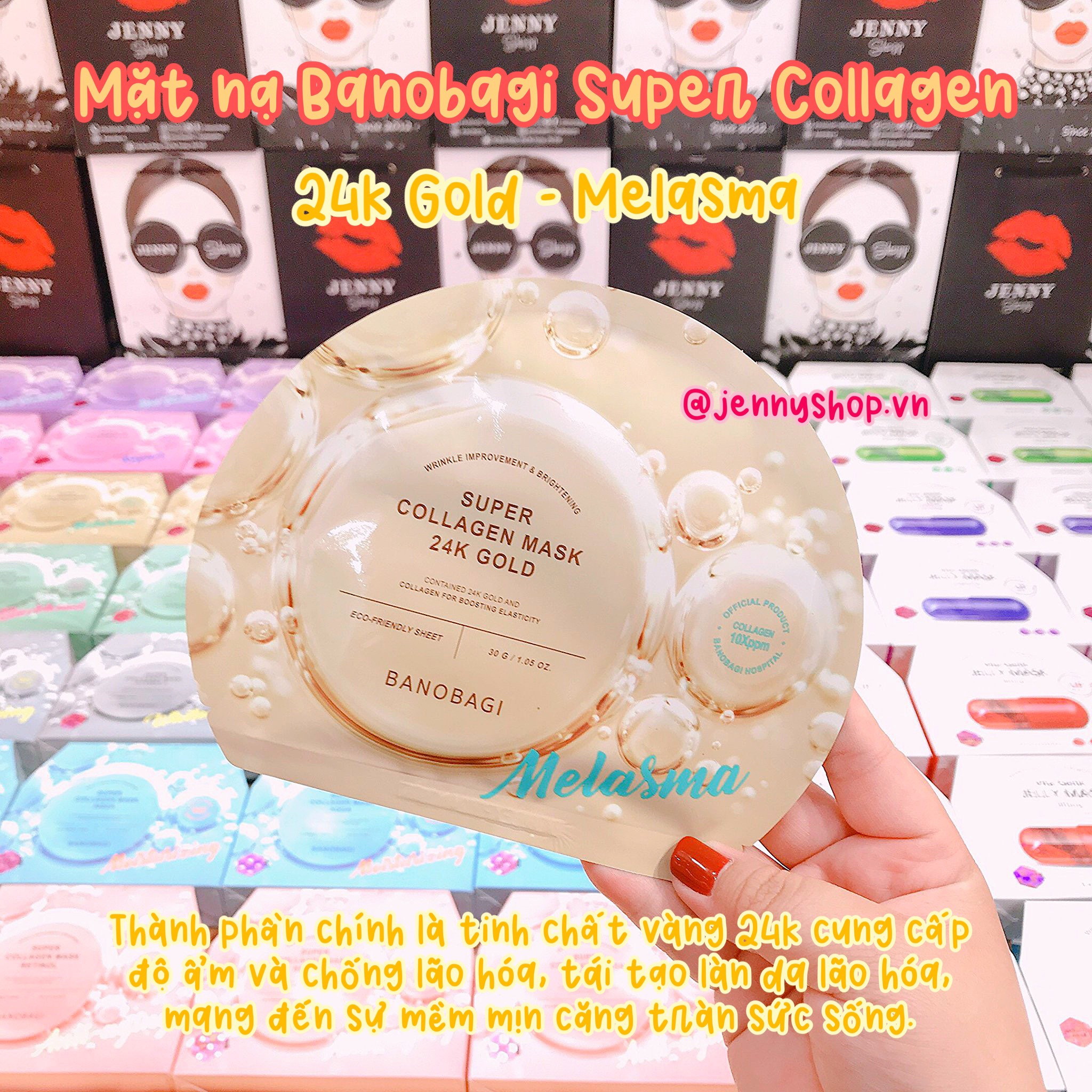 • 24K Gold: Thành phần chính là tinh chất vàng 24k cung cấp độ ẩm và chống lão hóa, tái tạo làn da lão hóa, mang đến sự mềm mịn căng tràn sức sống.