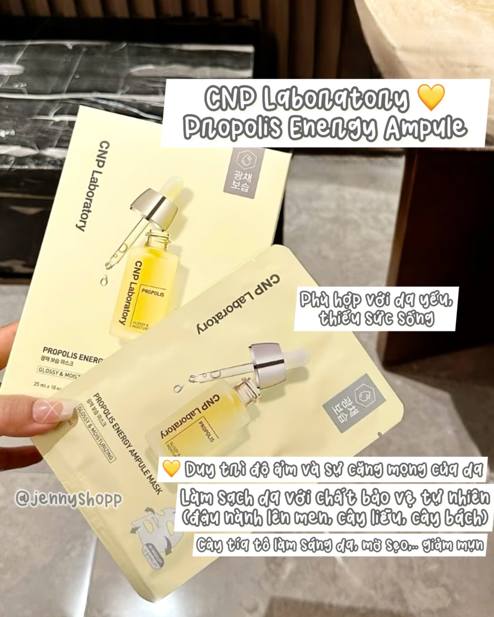 3. Propolis Energy (màu vàng): Dưỡng sáng và làm đều màu da, giảm viêm, nuôi dưỡng da căng mọng, khỏe mạnh.