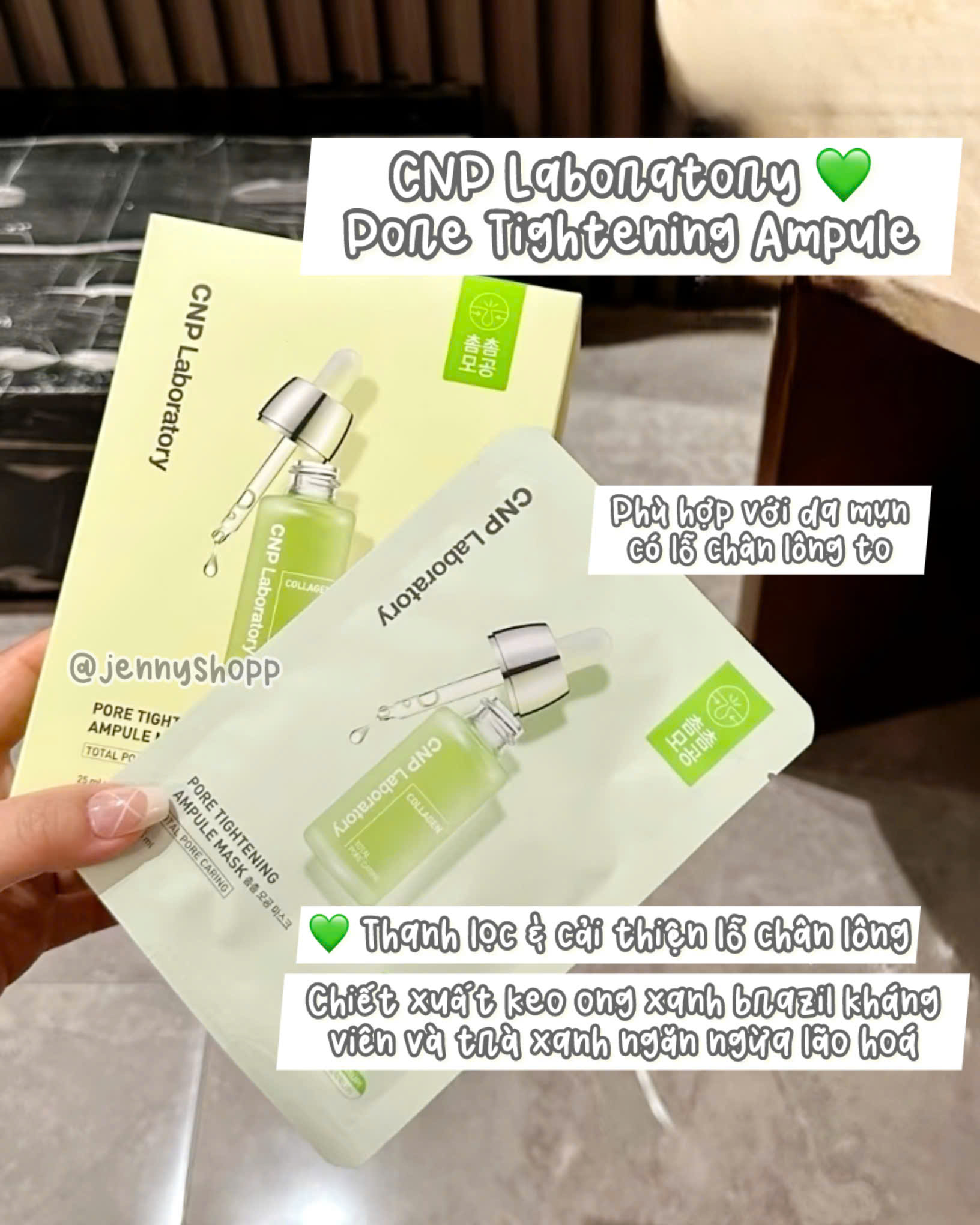 2. Pore Tightening (màu xanh lá): Kiểm soát dầu nhờn và se khít lỗ chân lông. Giảm sưng viêm kích ứng.