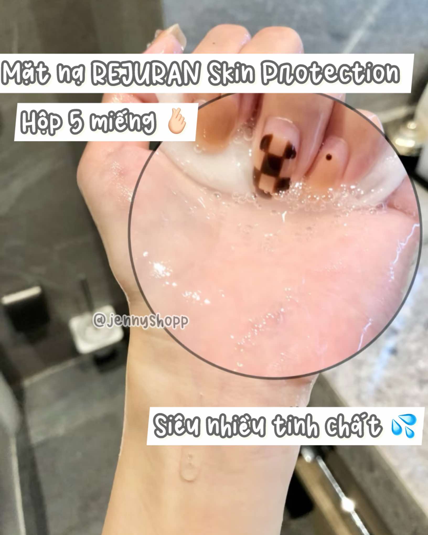 Bên cạnh tế bào gốc cá hồi, Rejuran Skin Protection Mask còn được bổ sung các dưỡng chất từ thiên nhiên như chiết xuất trà xanh, lô hội và hyaluronic acid. Các thành phần này không chỉ giúp cung cấp độ ẩm mà còn bảo vệ da khỏi các tác nhân gây hại từ môi trường.
