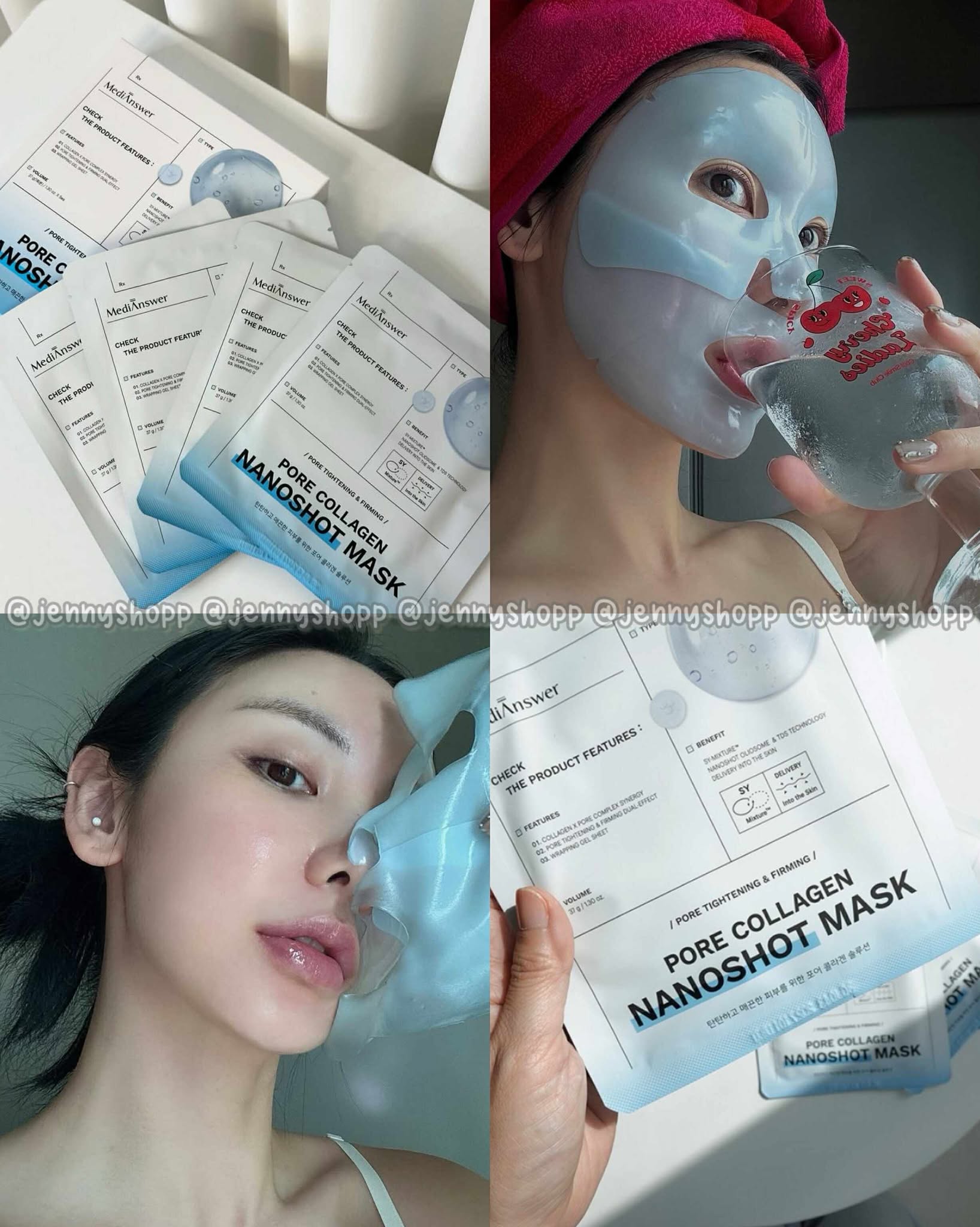 ▪️𝐌𝐞𝐝𝐢𝐀𝐧𝐬𝐰𝐞𝐫 𝐏𝐨𝐫𝐞 𝐂𝐨𝐥𝐥𝐚𝐠𝐞𝐧 𝐌𝐚𝐬𝐤 (xanh): củng cố hàng rào độ ẩm, căng bóng và cải thiện lỗ chân lông to.