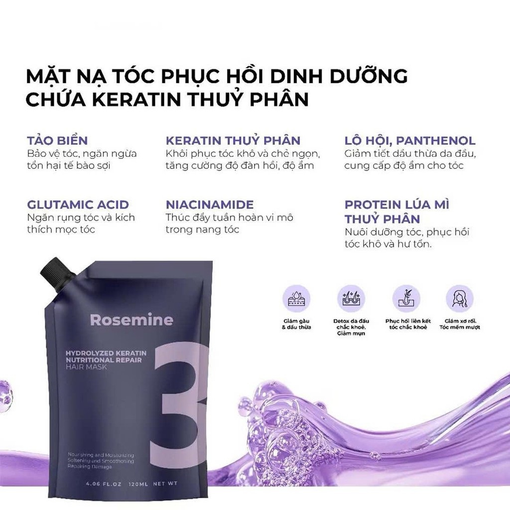 - Ceramide & Keratin Complex: Phục hồi cấu trúc sợi tóc từ gốc đến ngọn.
