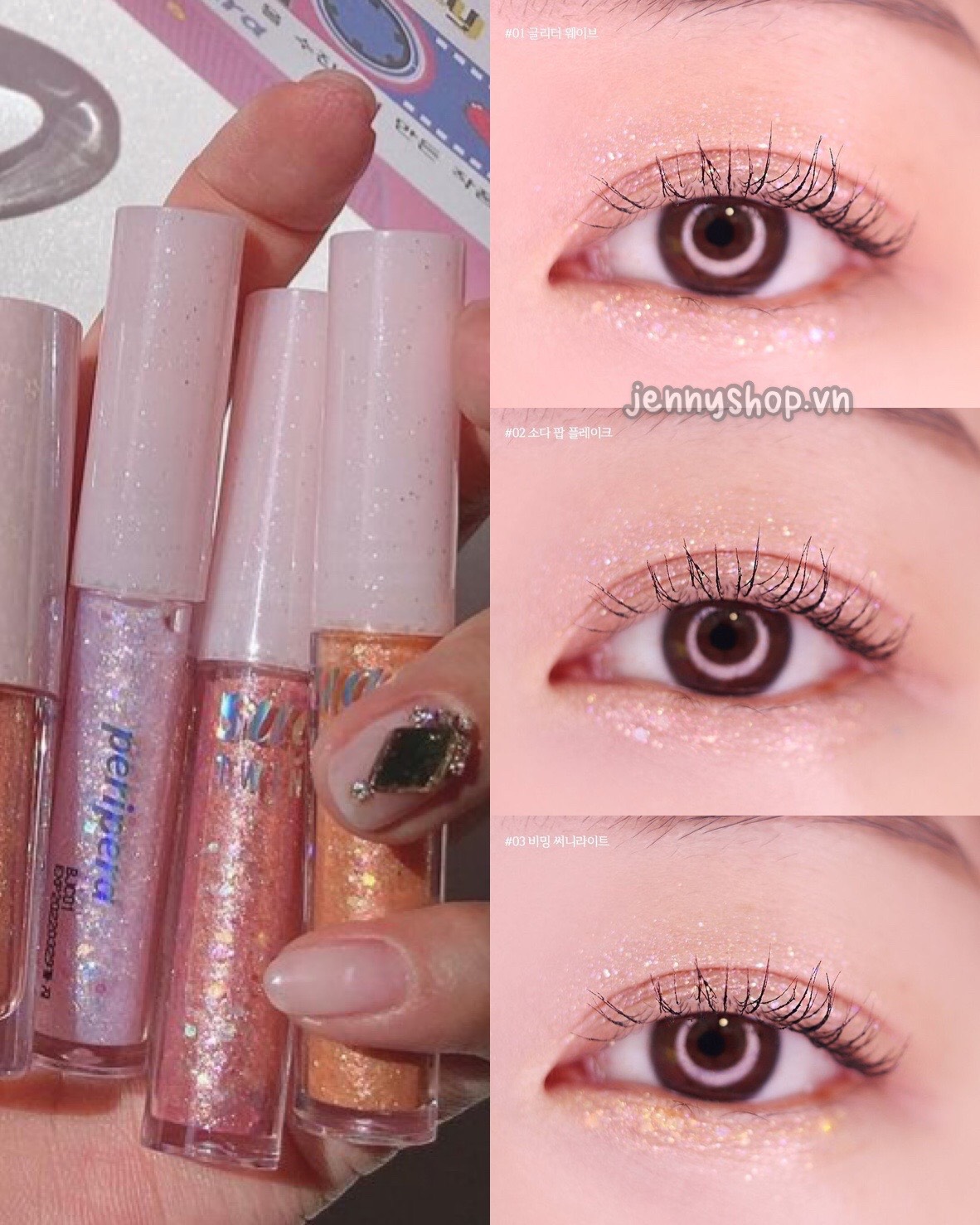 Là nhũ mắt với sự hòa quyện giữa những hạt nhũ to nhỏ với nhau, kết tinh đẹp hết sảy trên đôi mắt hút hồn.