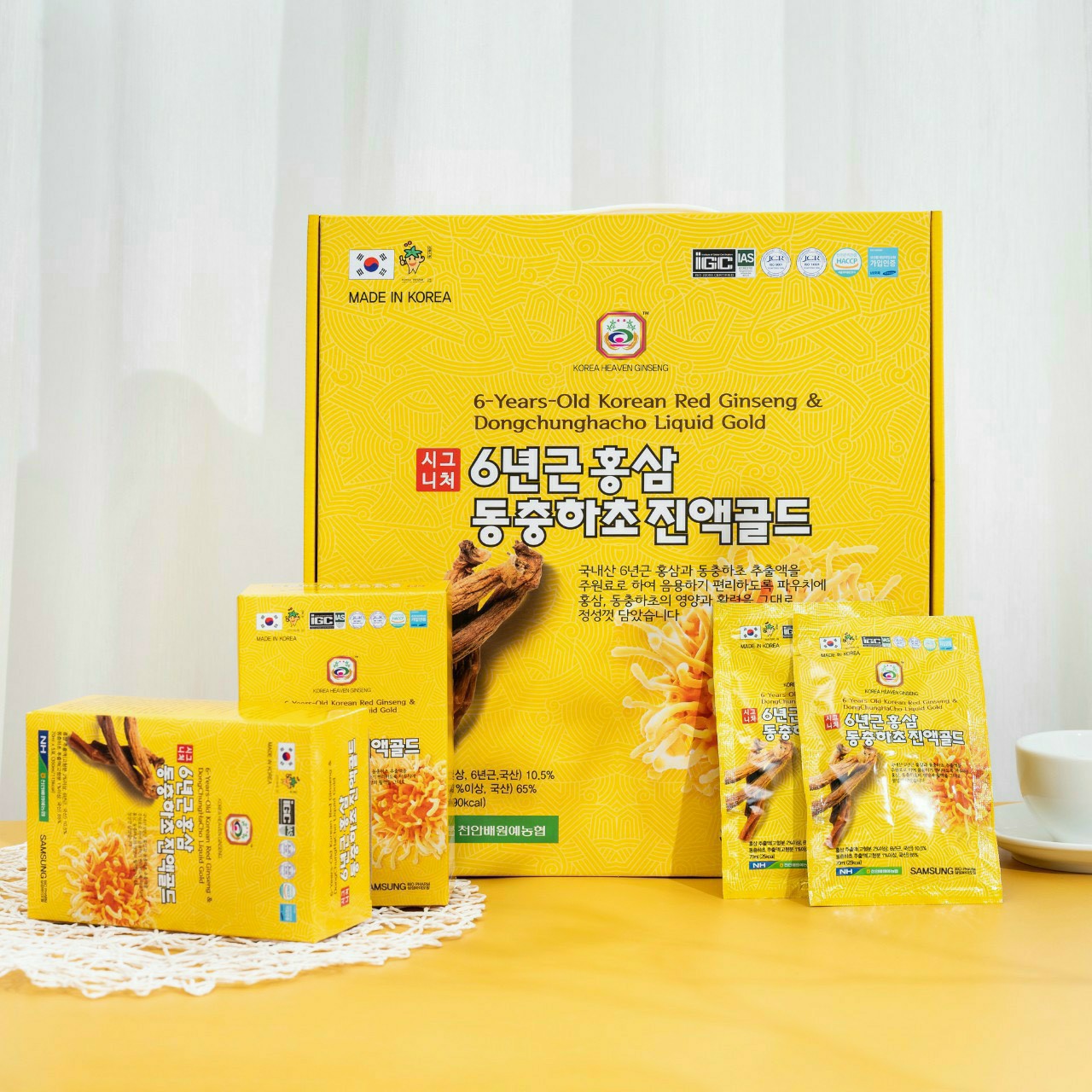 Tên sản phẩm: Nước hồng sâm đông trùng Gold hộp vàng 70ml x 30 gói