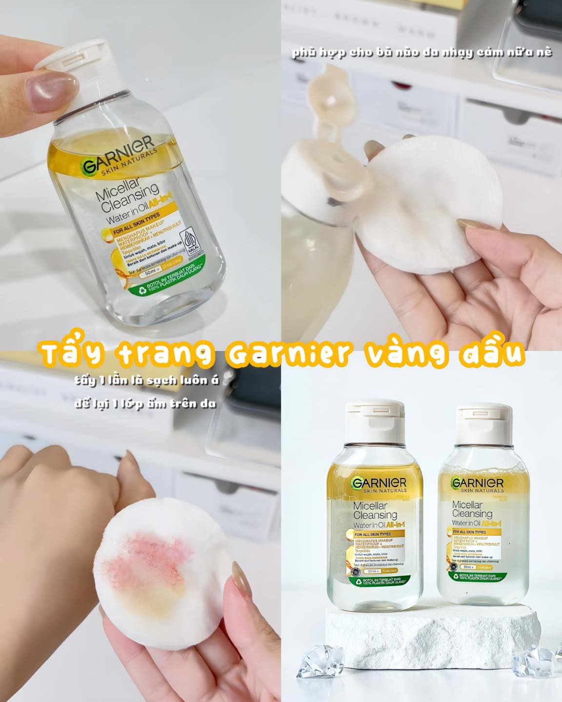 Đi du lịch có thể thiếu gì cũng được, chứ nhất định không thể thiếu nước tẩy trang Garnier!Đi du lịch mà lười mang tẩy trang là “xong” làn da ngay. Thay vì vác chai to nặng nề, mấy em mini này vừa gọn túi vừa đảm bảo da sạch bóng sau cả ngày dài: