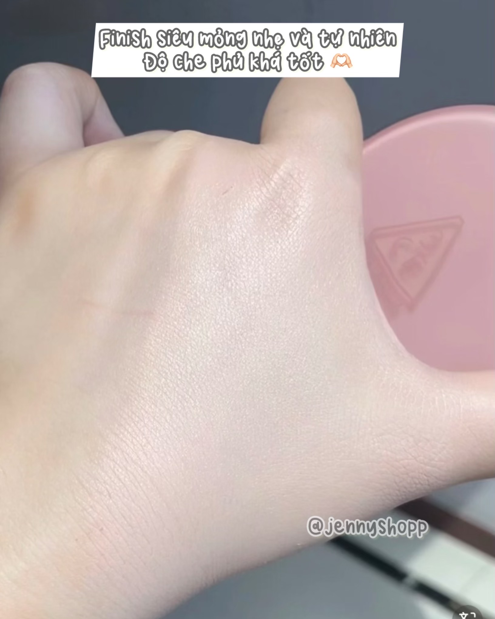 Mặt cushion dạng lưới mịn, giúp phấn được thoa đều mà không bị vón cục hay bết dính nha.