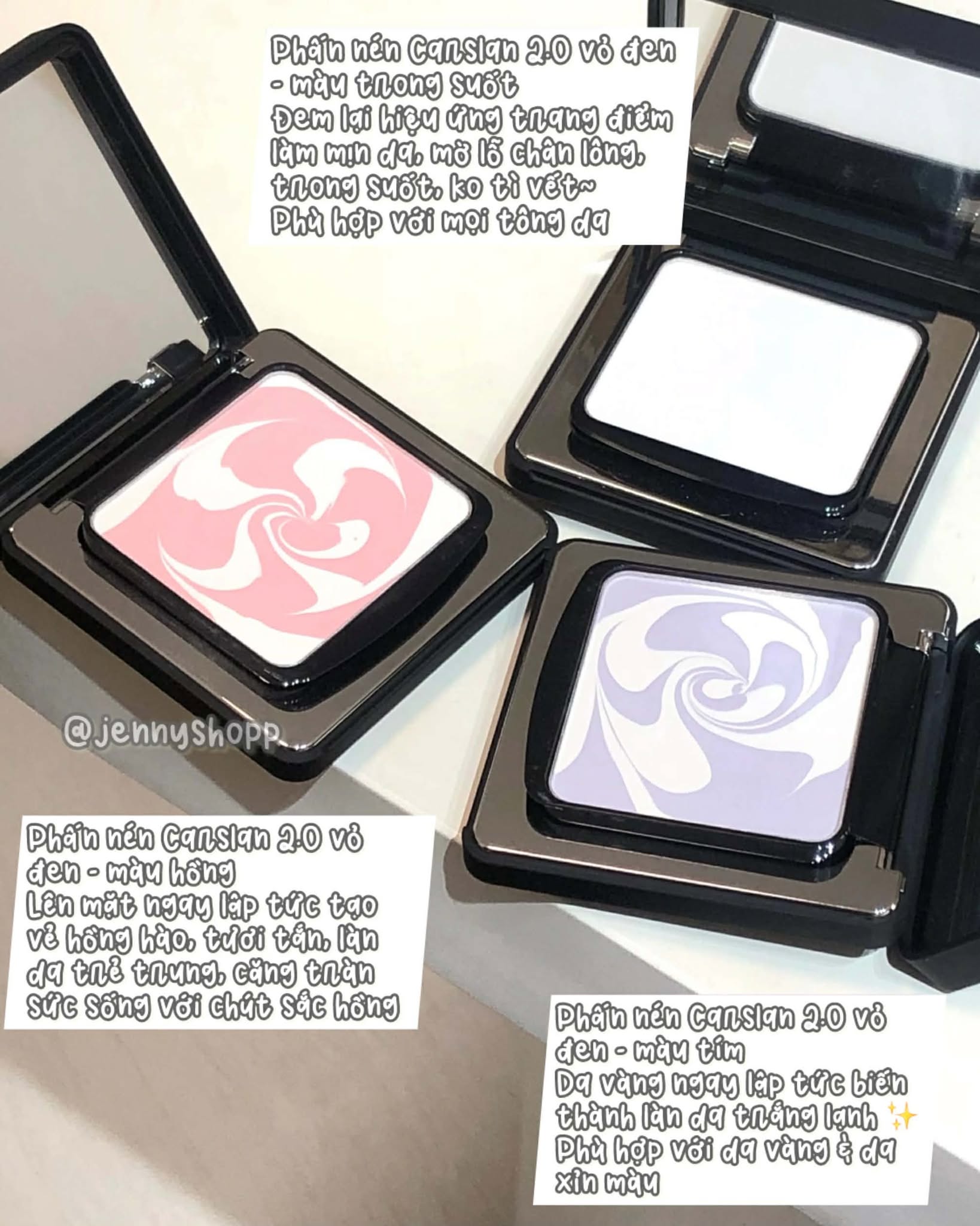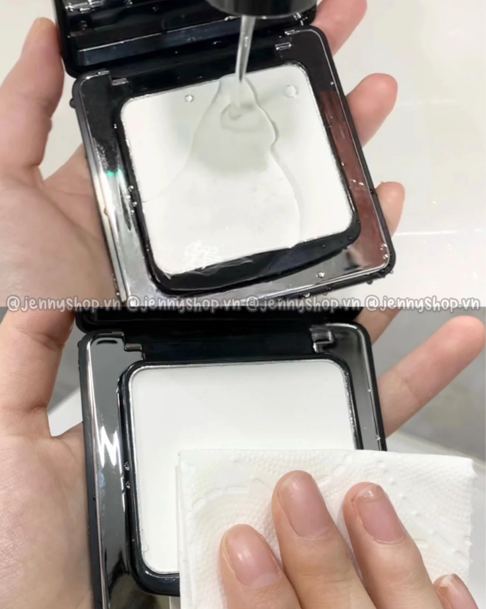 ✨ Bản kiềm dầu (Thích hợp cho da dầu/siêu dầu): Màu trong suốt, chất phấn mỏng nhẹ mịn màng.