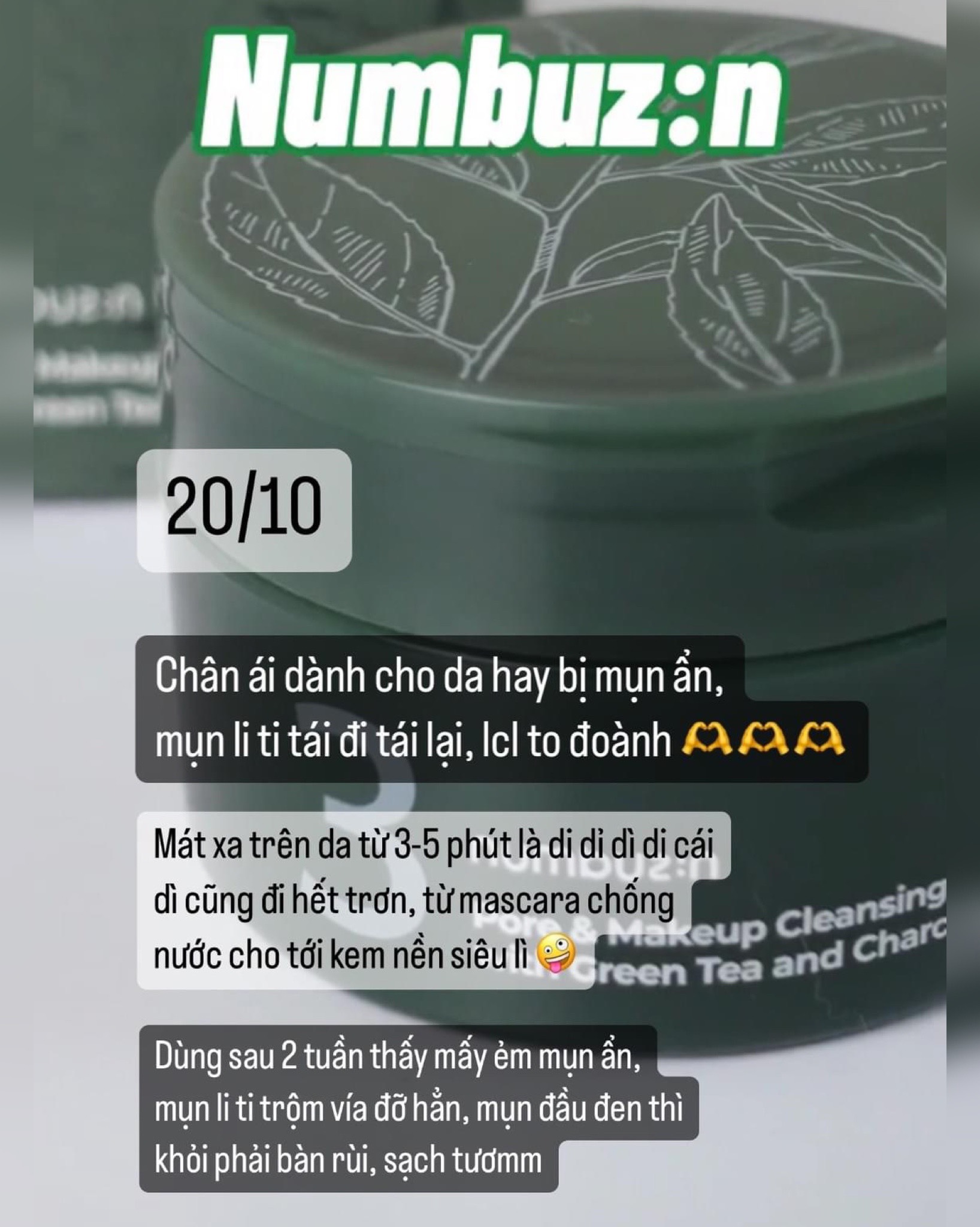 Sáp Tẩy Trang Numbuzin No.3 Pore & Makeup Cleansing Balm with Green Tea and Charcoal