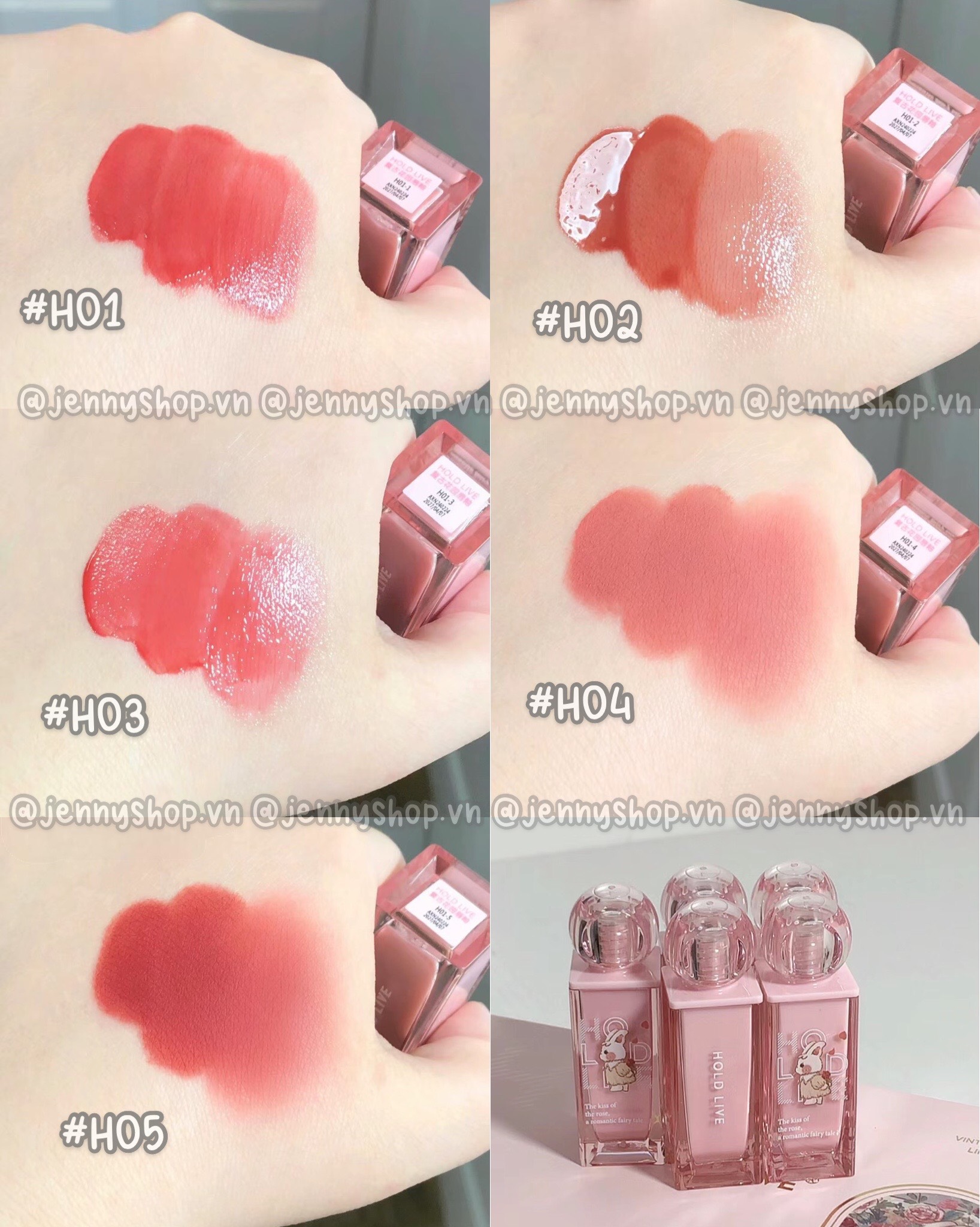 🎀 H04, H05 : kết cấu son kem nhung mịn mượt, che khuyết điểm môi tốt.