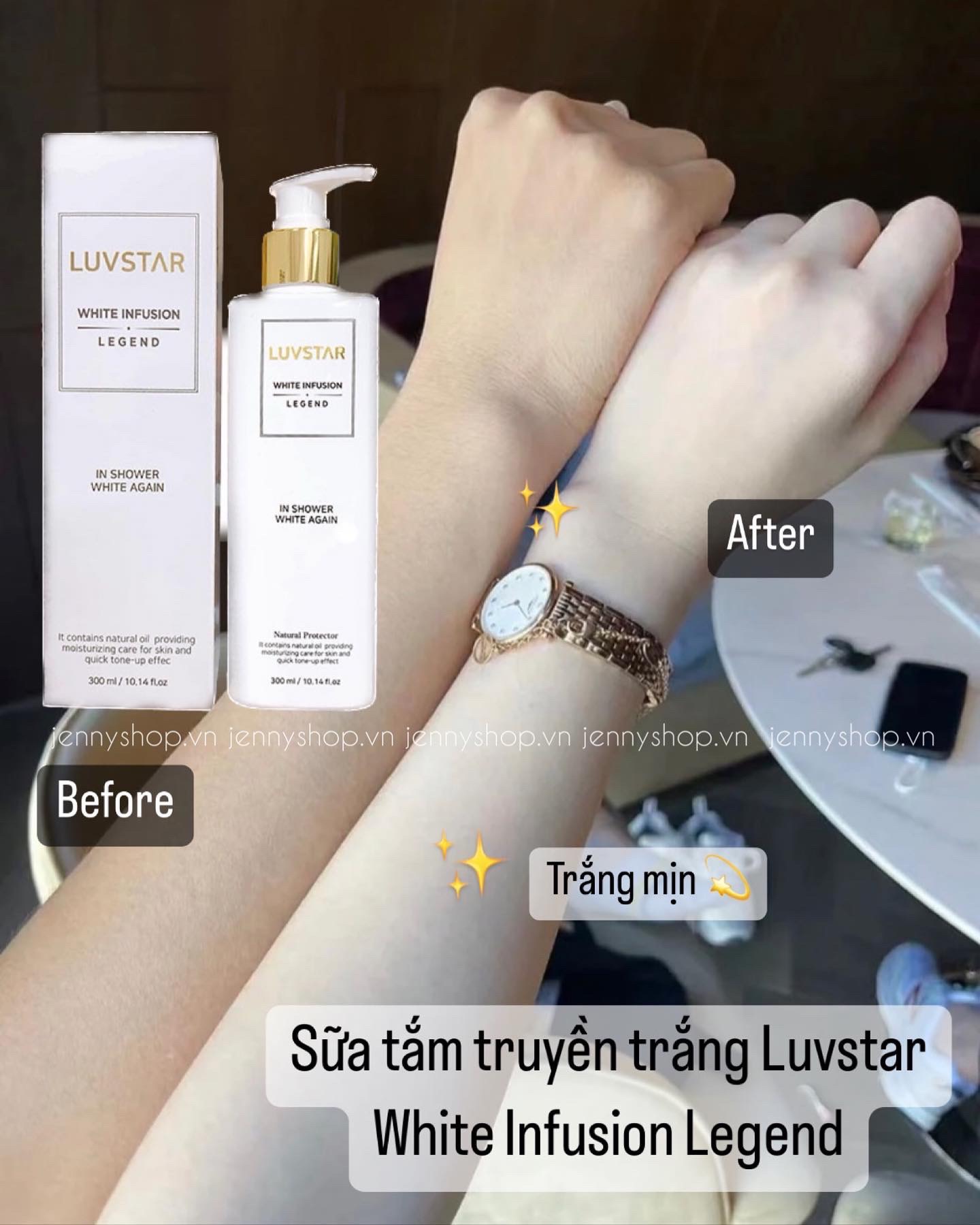 - Lấy một lượng sữa tắm trắng Luvstar vừa đủ và thoa lên khắp cơ thể.