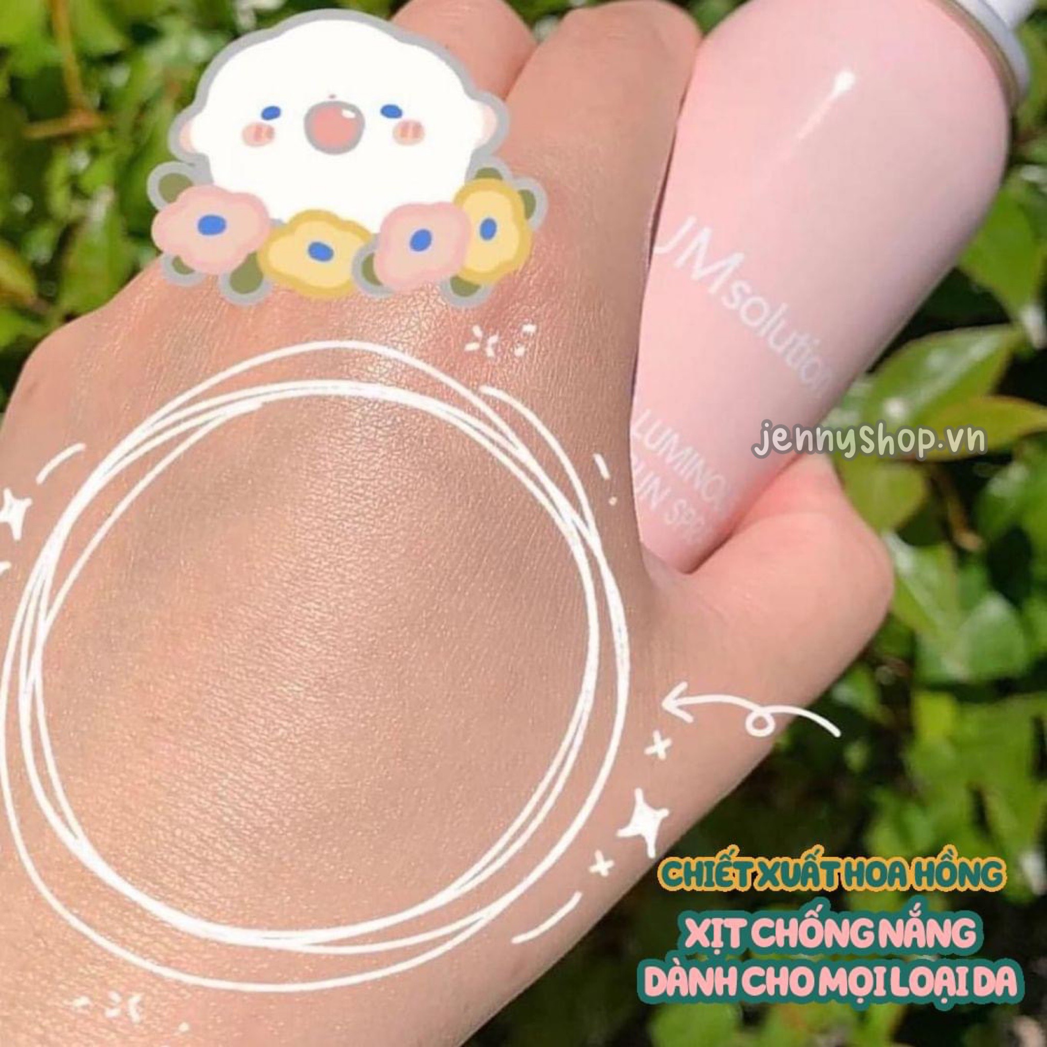 2. Glow Lumious Flower (chai màu hồng) : da khô - dành cho ai muốn da nhìn glow, căng lên mướt mướt mà cũng ráo mặt không hề bị đổ dầu, dành cho da cần thêm độ ẩm.