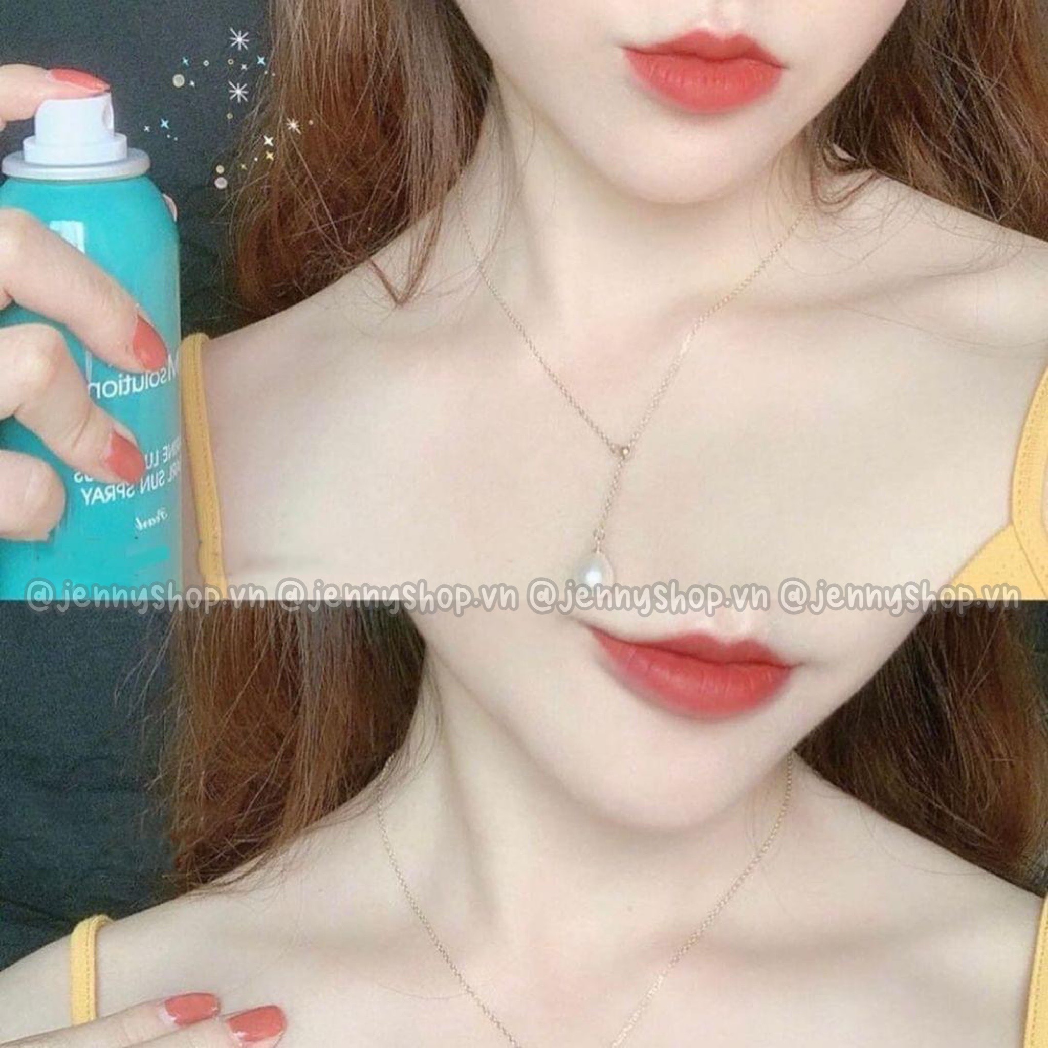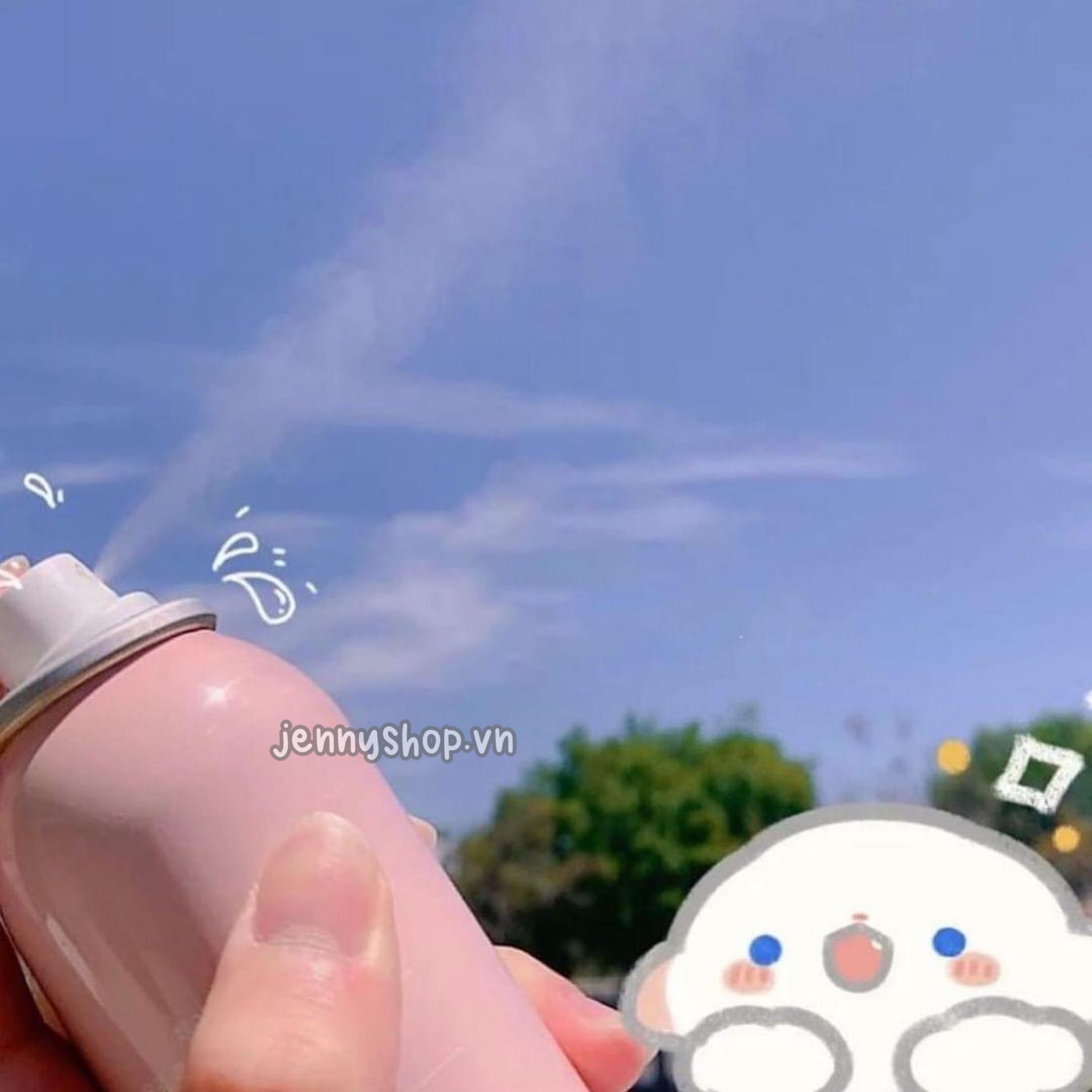 – Cằm bình thẳng đứng và xịt cách da 20cm.